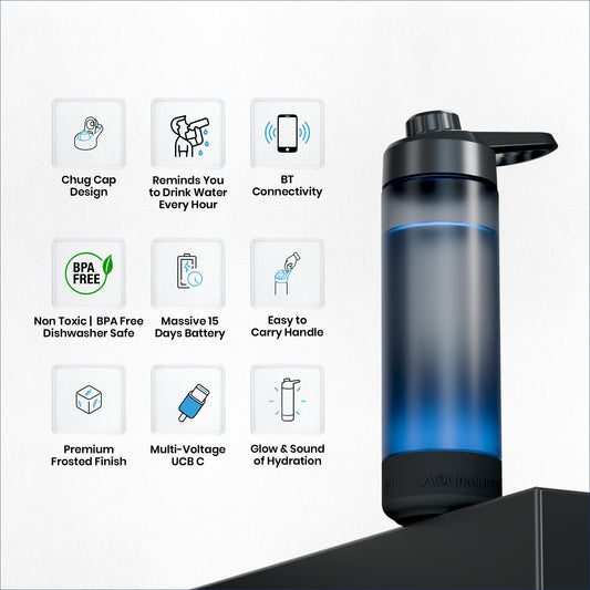 Aquaminder features an innovative "Sound & Glow of Hydration" reminder system that beeps and glows every hour to remind you to drink water. Simply set it up, and it will ensure you never forget to stay hydrated, even during your busiest moments.