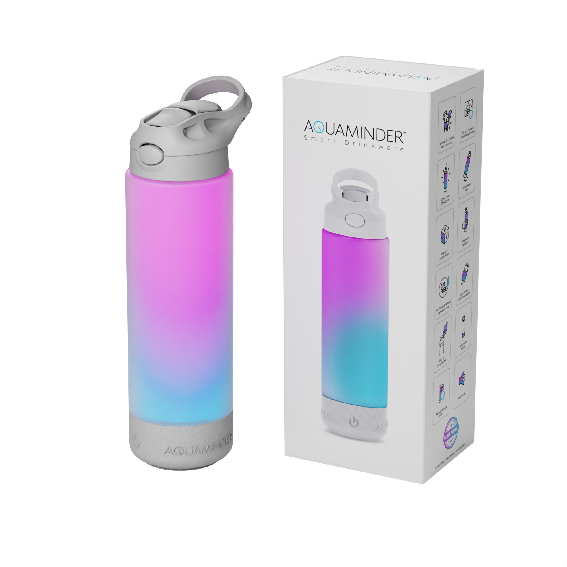 Aquaminder features an innovative "Sound & Glow of Hydration" reminder system that beeps and glows every hour to remind you to drink water. Simply set it up, and it will ensure you never forget to stay hydrated, even during your busiest moments.